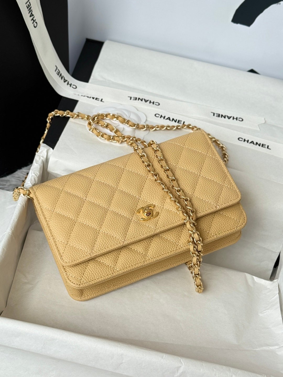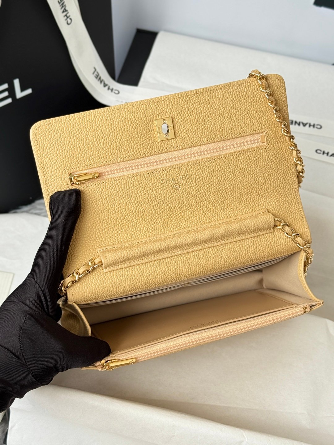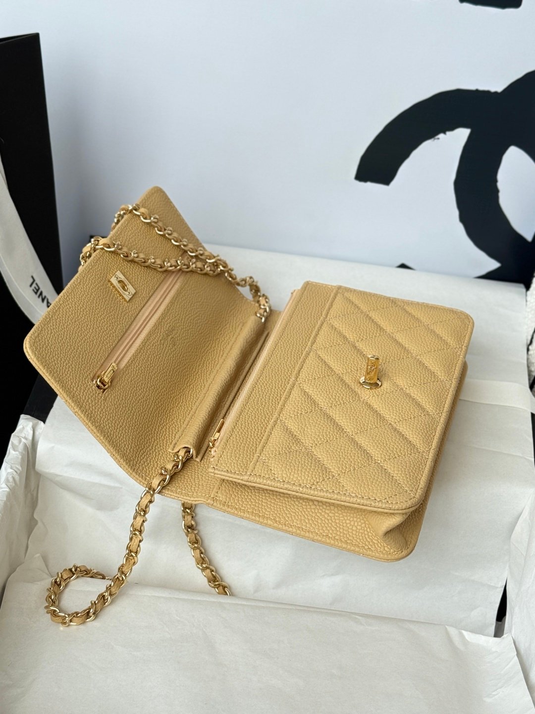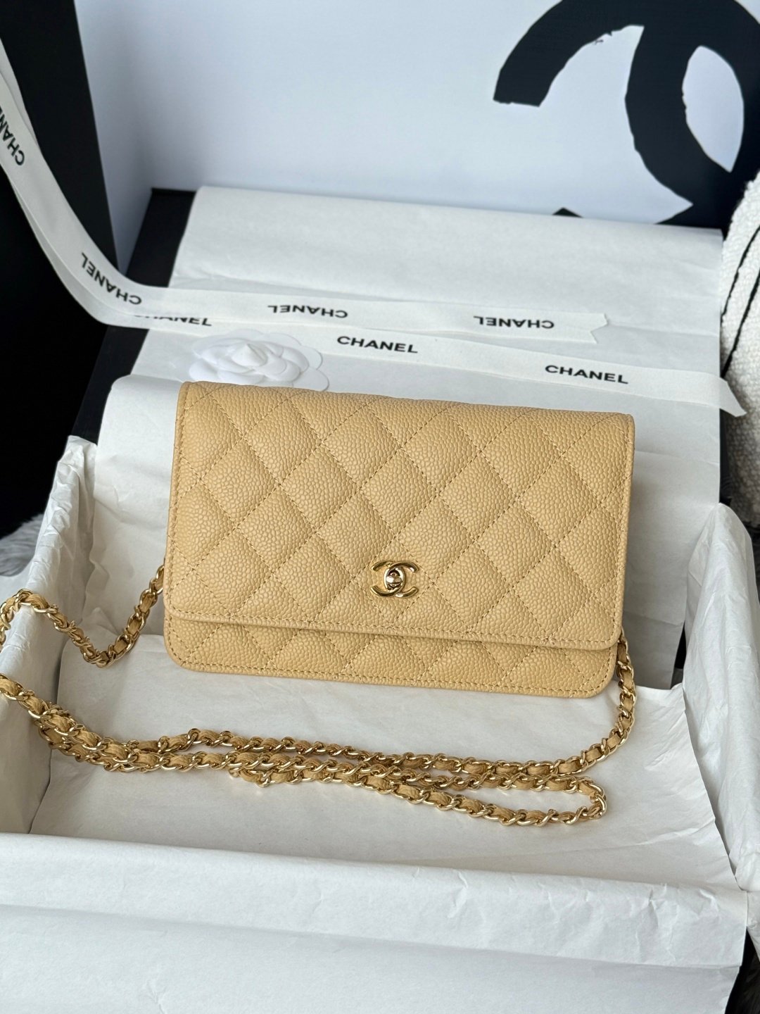 In 2025, Chanel WOC (Wallet on Chain) will release a new product. The most classicStyle is available in various styles such as cross-body, single shoulder, and hand carry. It has a cool appearance that makes you feel like you are walking with the wind. The bag’s shape is square, fitting for all daily outfits. Made of caviar mini leather, it shines beautifully under natural light. The leather feels luxurious and smooth to touch, which cannot be described in words. The texture is perfect even from a screen. The diamond pattern on the bag is full but not too raised, achieving a balance that’s hard to manage. Most products on the market tend to overdo this feature.