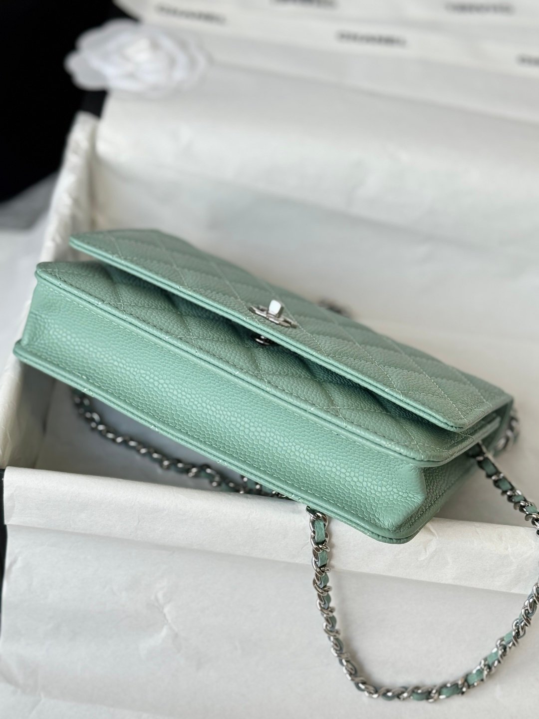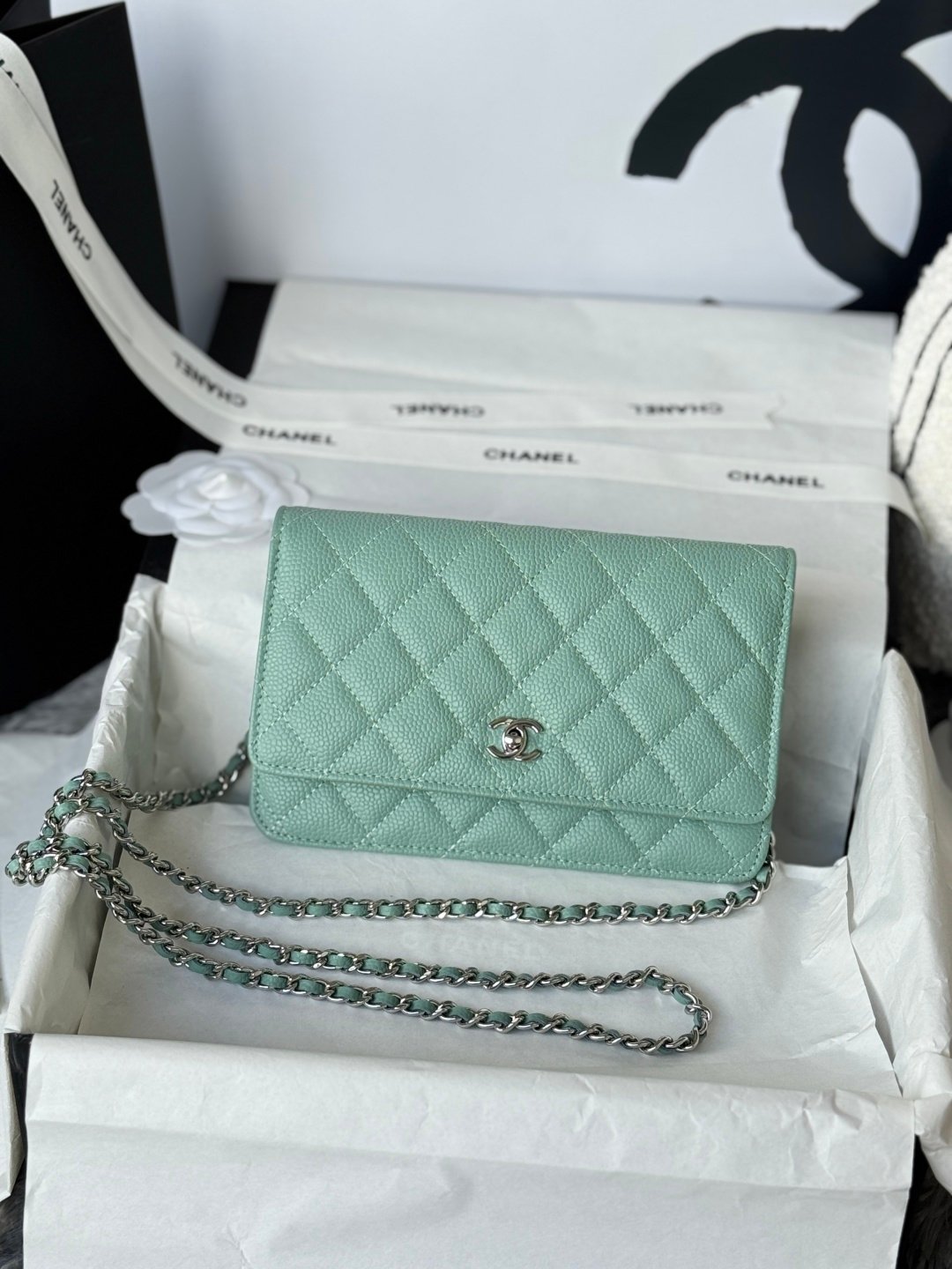 In 2025, Chanel WOC will release a newFortune Bag with various styles including the classic single-strap and tote bags. The design is stylish and cool, making you feel like walking on air. The bag has a classic shape with square sides and dimensions suitable for everyday outfits. Made of caviar mini leather, it shines beautifully under natural light. The leather feels luxurious and soft to touch. Even from the screen, you can sense its perfect texture. The diamond pattern is full but not too raised, which requires precise craftsmanship. Most bags on the market tend to have overly prominent patterns.