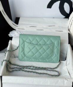This Chanel WOC embodies elegance and nobility with a sophisticated aura that exceeds expectations. It’s crafted from high-quality Italian leather and features an original fabric lining. The hardware includes steel buckles reminiscent of classic car parts.