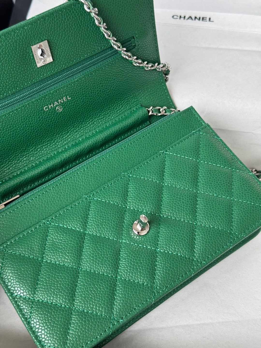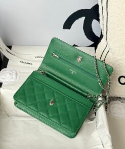 This Chanel WOC purse embodies elegance and nobility, surpassing expectations. It’s crafted from high-quality Italian leather imported directly. The interior lining is made of genuine fabric as per the original specifications. The hardware includes a steel buckle.