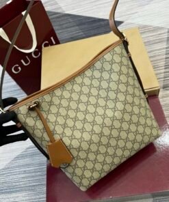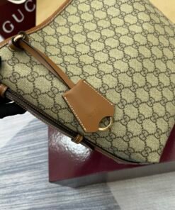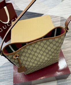 GG Emblem series reinterprets the timeless elegance andPrecise Craftsmanship of the brand. This shoulder bag features a signature GG letter interwoven pattern coating fabric, paired with cotton lining straps, showcasing refined charm.
