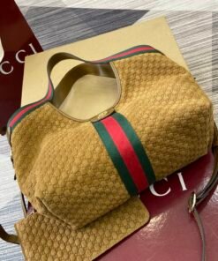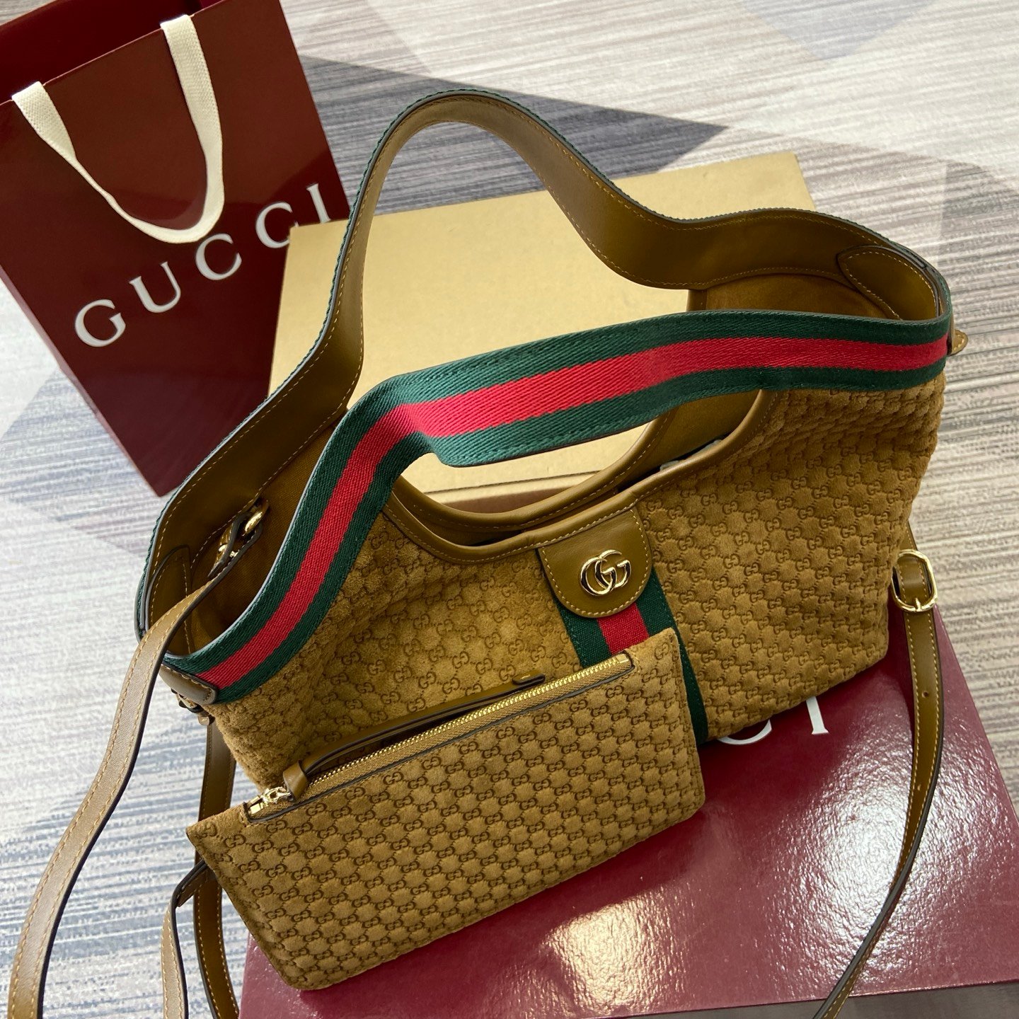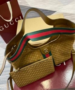 Gucci Giglio series mini tote bag made its debut during the early spring 2026 fashion show in Florence, now available in various sizes. The artisanal design pays homage to the Italian roots of the brand and showcases the spirit of heritage and innovation. This spacious handbag is crafted with a GG canvas material, adorned with leather trim and comes with a detachable clutch, adding furtherFashion Charm。