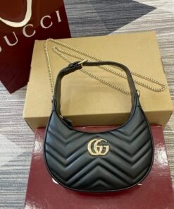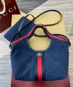 This new Gucci Jackie 1961 series handbag is crafted from high-quality leather, showcasing the brand’sPrecise Craftsmanship、New moon shape and smooth contour of classic shoulder bag. The gold tone accessories and leather trim combined with the attached strap creates moreDressing may for this medium-sized shoulder bag made from deep blue leather.