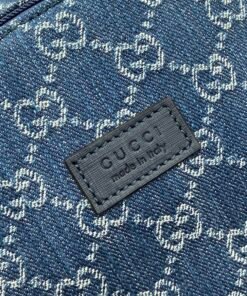 Early Fall Children’s Series presents classic logos and designs. This GG denim backpack draws inspiration from the adult series design, featuring a “Made in Italy” leather tag for brand expression. Features include: blue and ivory white GG denimFabric; deep blue leather edging; red and blueStrapping; “Gucci Made in Italy” leather tag; adjustable shoulder straps; zipper inner pocket; zipper outer pocket; top handle; zipper closure. Model number: 782708. Dimensions: 32 cm (H) x 25 cm (W) x 11 cm (T). Color: blue denim. Created in Italy.