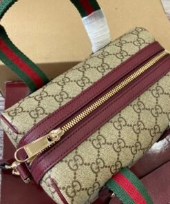 Inspired by the iconic travel bag silhouette of Gucci, the brand introduced the Mini GG handbag. This handbag is crafted from soft GG canvas print fabric and features web strap handles and detachable leather straps, reinterpreted classic elements of the brand, paying tribute to Gucci’s proud tradition of travel.