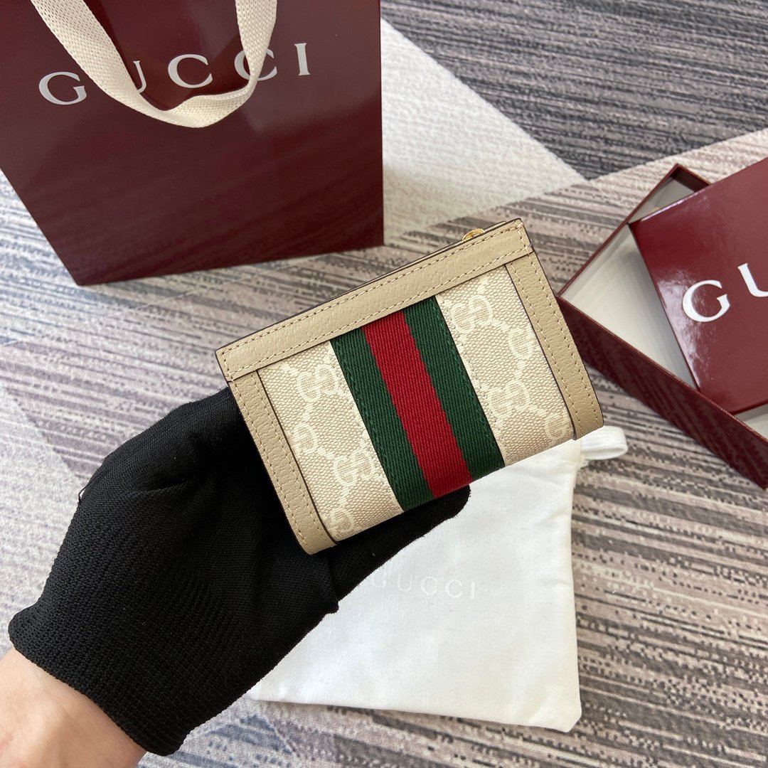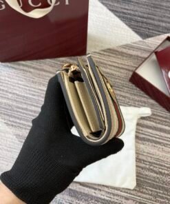 GG emblem originally used in the 1970s, is an evolution of the Gucci diamond pattern from the 1930s, since then it has become a iconic symbol of Gucci tradition. This beige and oatmeal Supreme wallet combines the iconic pattern with green and red mesh, which is an eternal combination paying tribute to Gucci’s roots.