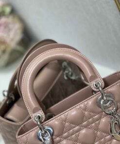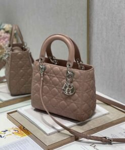 正品级 ❤️【Lady Dio.r My ABC】「蔷薇粉羊皮银扣」/五格羊皮配调节肩带/这款手袋集中体现了Dio.r 对典雅和美丽的深刻洞见。采用小羊皮革精心制作,以标志性的藤格纹针脚打造绗缝细节,高雅经典的设计经久不衰。饰以同色调珐琅彩,内配羊猄,搭配调节肩带,内部拉链口袋,可手提、肩背或斜挎尺寸:24×20×11