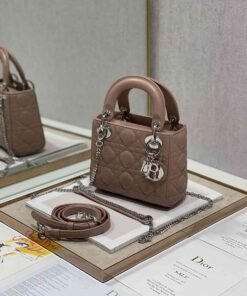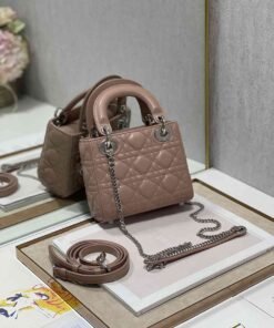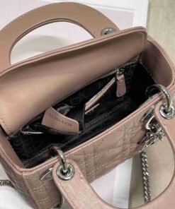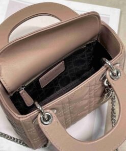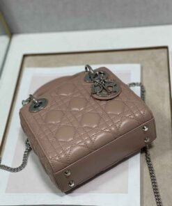 正品级 ❤️【Lady Dio.r My ABC】「蔷薇粉羊皮银扣」/三格羊皮双肩带/这款手袋集中体现了Dio.r 对典雅和美丽的深刻洞见。采用小羊皮革精心制作,以标志性的藤格纹针脚打造绗缝细节,高雅经典的设计经久不衰。饰以同色调珐琅彩,内配布,搭配链条肩带、可调节皮肩带,内部拉链口袋,可手提、肩背或斜挎尺寸:17 x 7.5x 14厘米