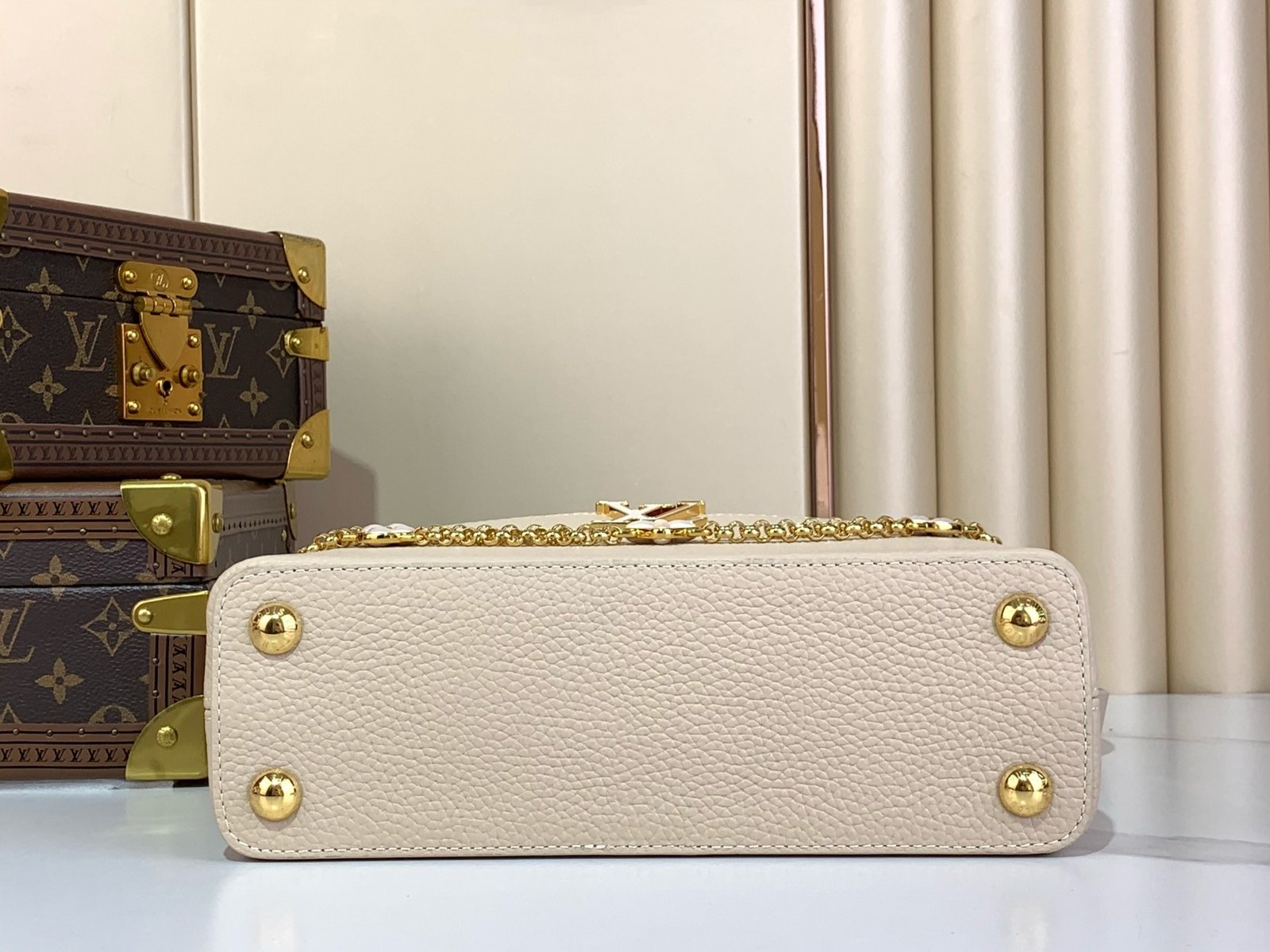 Top-tier replica exclusive real shot 【CAPUCINES BB Handbag】 m25461 Beige with Millet White Double Chains