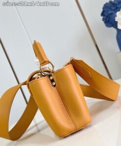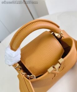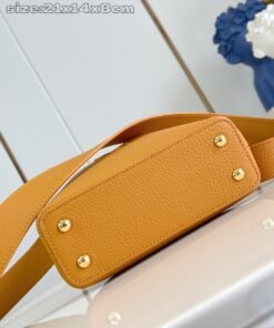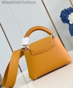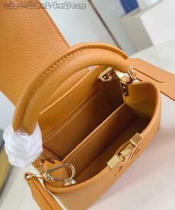 Top-level [Exclusive Real Shot M23703 Orange Mini] This Capucines mini handbag is crafted from Taurillon leather with aRich Tone, further enhanced by the handle ring and LV lettering for an impressive design. The compact size condenses classic contours, while the detachable strap allows for comfortable shoulder carrying and sling usage. Dimensions: 13.6 x 8 x 21 cm (Height x Width x Length)