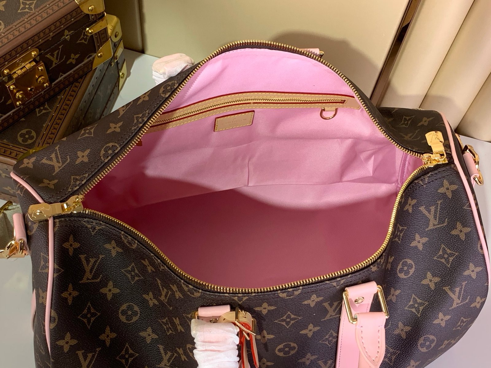 Top-grade replica exclusive photo 【KEEPALL BANDOULIÈRE 45 TRAVEL BAG】 m25822 Monogram floral print pink ink.