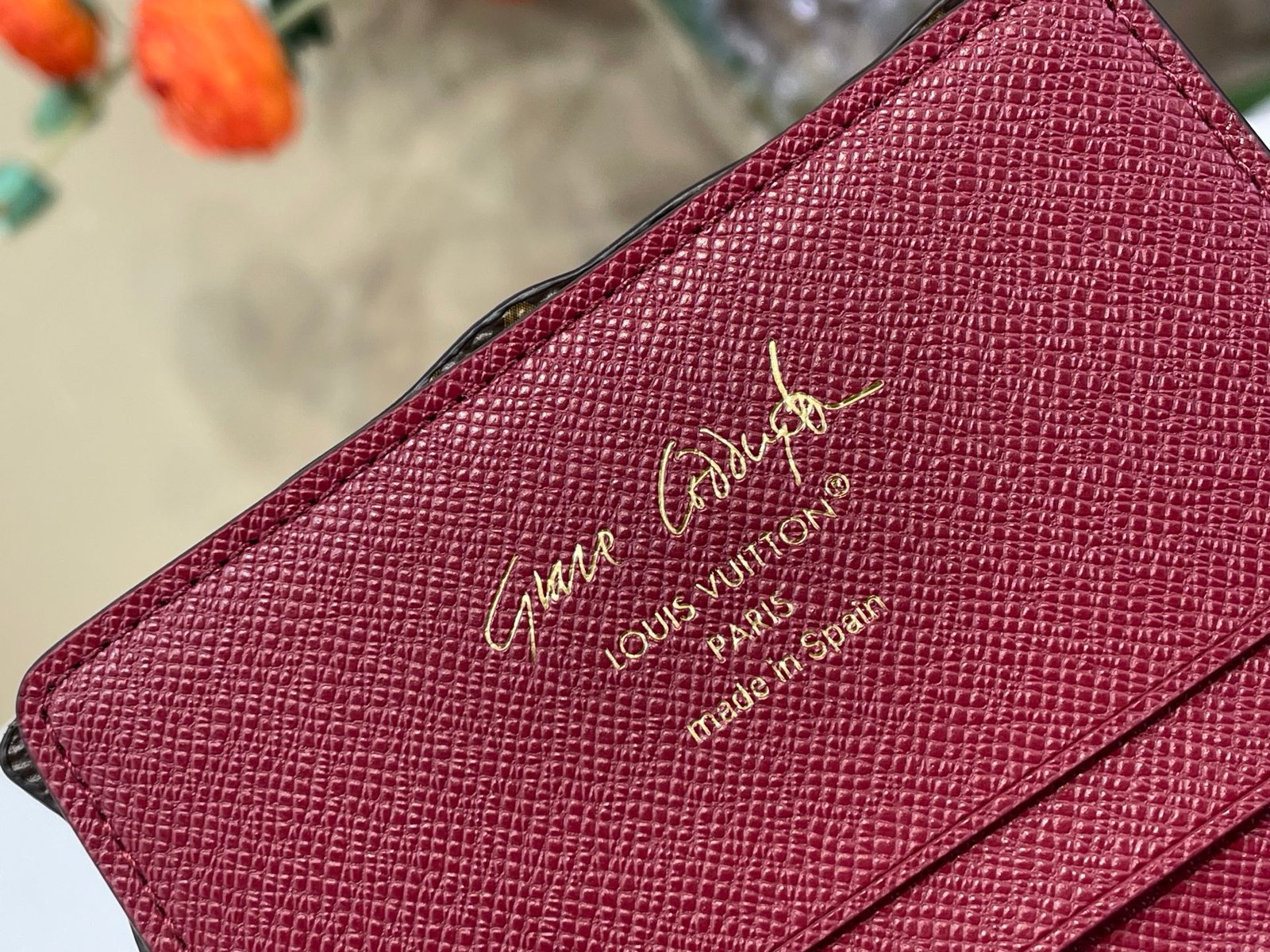Top-tier replica exclusive photo 【Pawket Wallet】M25732 floral print wine red cat