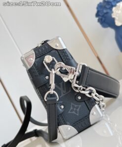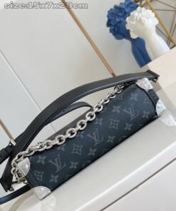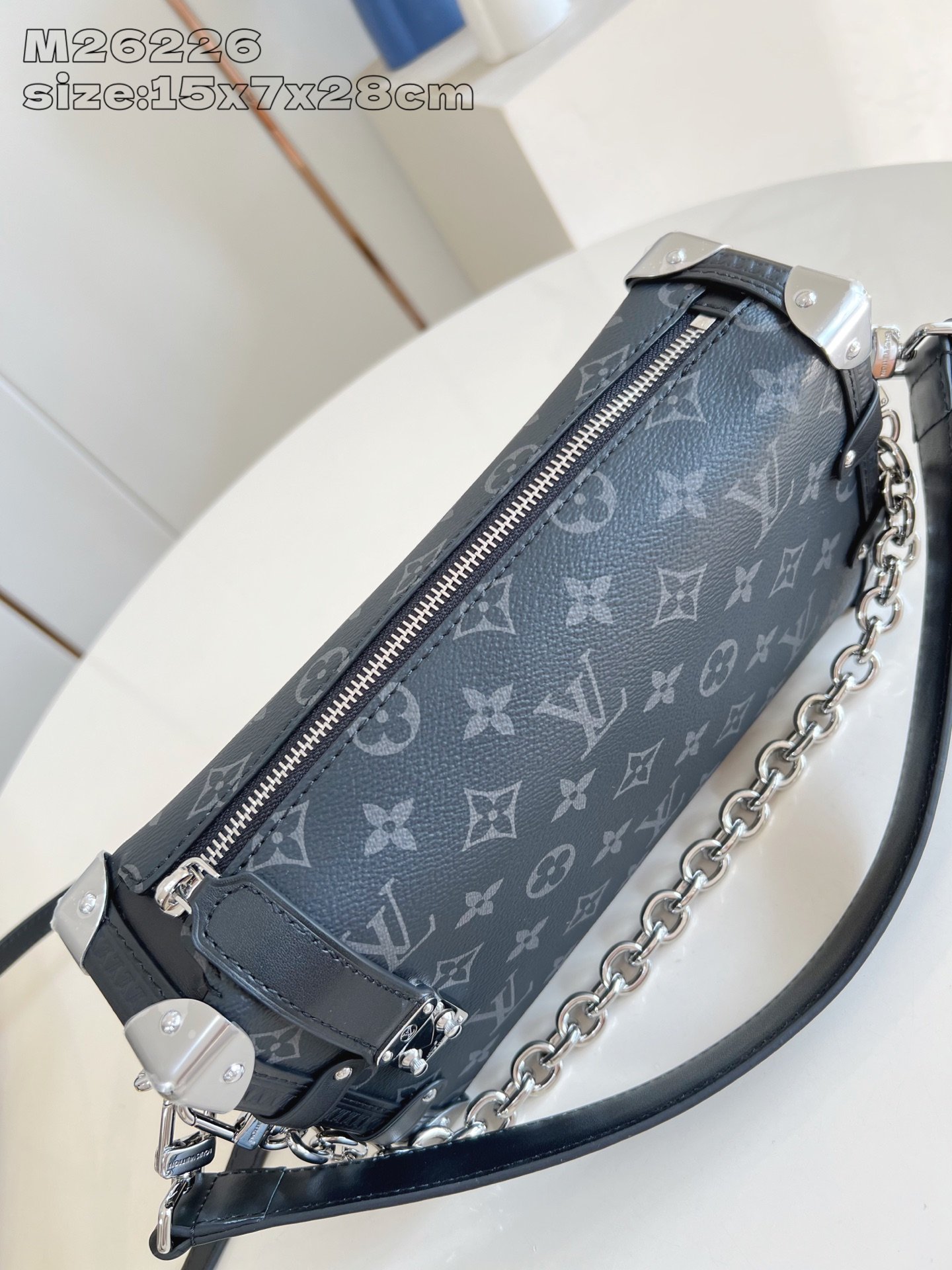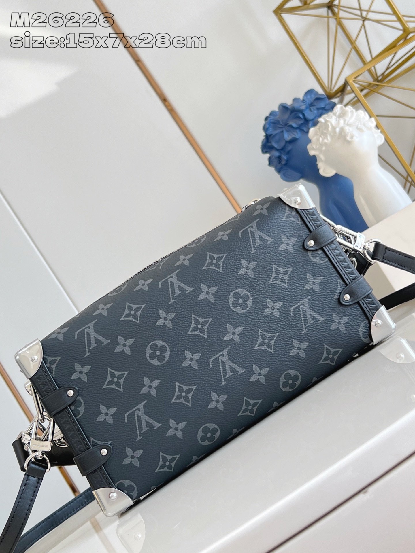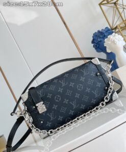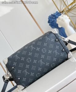 Top-tier exclusive real shot M26226 Side Trunk series introduces the East West version, featuring classic design crafted with Monogram Eclipse canvas. The soft silhouette encompasses ample space, complemented by S-lock latches, hard luggage corners, and glossy chains that uphold iconic touches. Ideal for daily use whether carried by hand or via a detachable long shoulder strap, making it an excellent choice for travel. Dimensions: 15 x 7 x 28 cm (Height x Width x Length).