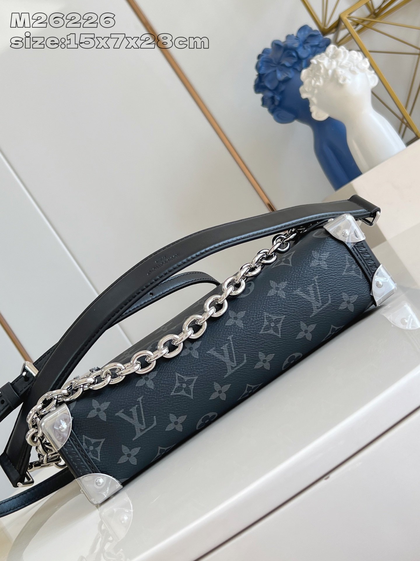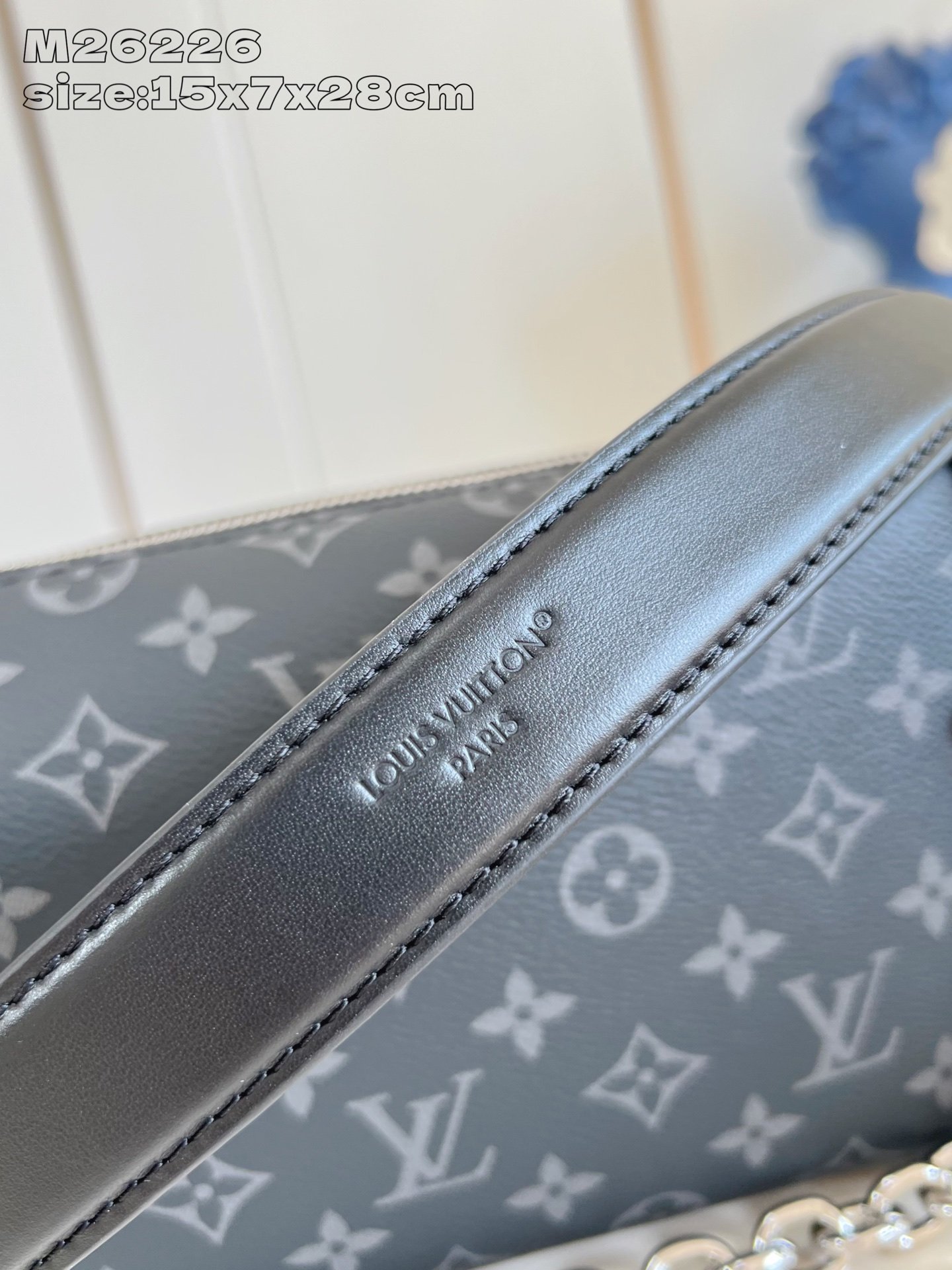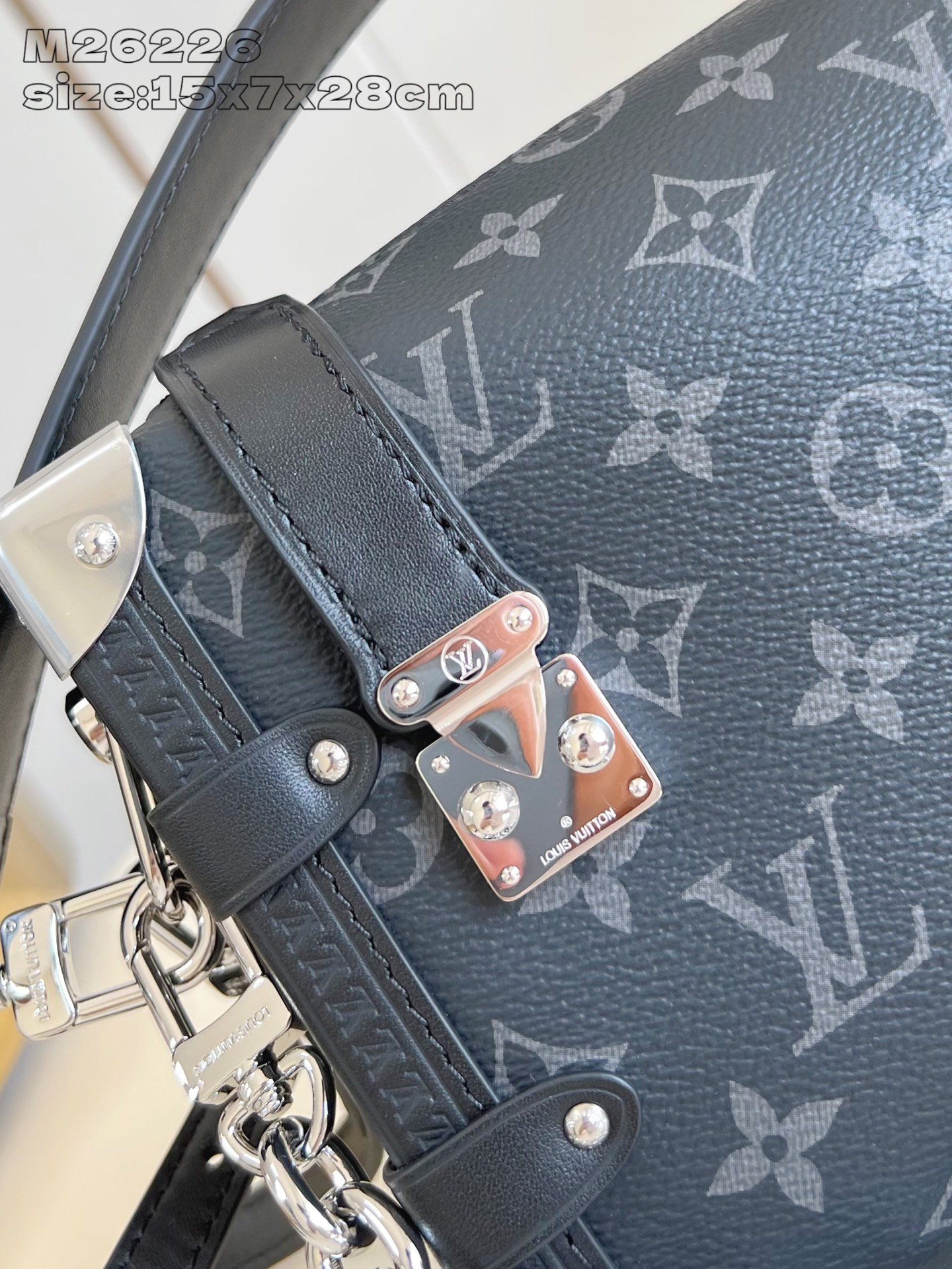 Top-tier exclusive real shot M26226 Side Trunk series introduces the East West version, featuring classic design crafted with Monogram Eclipse canvas. The soft silhouette encompasses ample space, complemented by S-lock latches, hard luggage corners, and glossy chains that uphold iconic touches. Ideal for daily use whether carried by hand or via a detachable long shoulder strap, making it an excellent choice for travel. Dimensions: 15 x 7 x 28 cm (Height x Width x Length).
