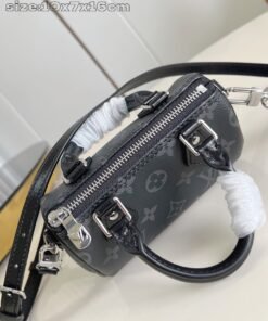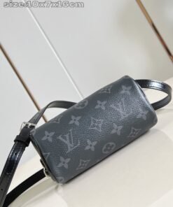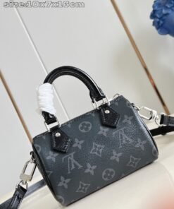 Top-level [Exclusive Real Shot M26573 Full Steel Version] This Nano Speedy handbag is crafted with canvas to create a delicate structure, featuring the Monogram Eclipse pattern for elegant style, easily brightening day and night looks. The glossy metal parts exude a refinedBreath, providing ample space to accommodate small wallets and other daily essentials, and detachable straps allow for various carrying methods. Dimensions: 10 x 7.5 x 16 cm (Height x Width x Length).