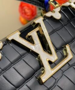 Top-tier replica exclusive photo 【Capucines Mini Bag】M86153 48865 Black (AlligatorTexture-Flower White Mother of Pearl)