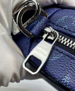 This model is made of Monogram Heritage coated canvas with cotton lining, reinforced with leather at the corners and zipper head. It can hold small items like phones. The detachable and adjustable shoulder strap offers both shoulder carrying and cross-body options.