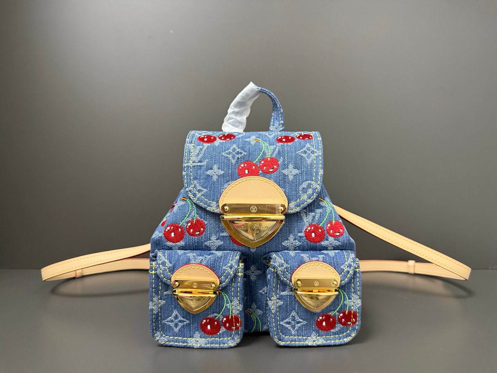 Top-tier replica exclusive photography M13679 (163 chip) This Venice backpack from Louis Vuitton x Takashi Murakami replica series is made of Monogram denim with a unique cherry embroidery, showcasing the vibrantFlavor from Japanese artist interpretations. The detailed leather outlines the slender shoulder straps, and the bright snaps highlight the flip top and outer pocket. 24.0 x 26.0 x 7.0cm52