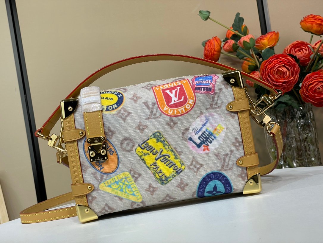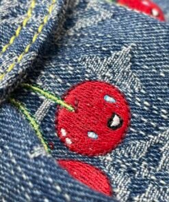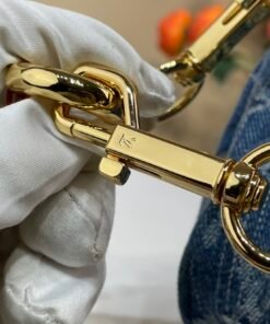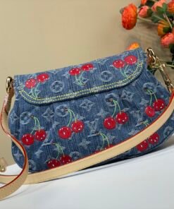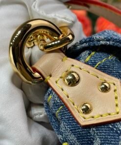 Made from Monogram denim, shaped in a round form with a retro touch, then lit up by the eye-catching snap button. The bright cherry blossom embroidery showcases the lively style of the Louis Vuitton x Takashi Murakami reissue series, complemented by the studded leather strap.