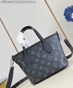 Top-level [Exclusive Real Shot M15210] Neverfull Bandoulière Inside Out BB handbag, this season presents a dual-sided version of the classic design, featuring the iconic Monogram canvas and grained leather on both sides. The detachable zipper pocket can be used separately or hung externally. The detachable shoulder strap adds convenience for sling carrying, with eye-catching metal details adding refined touches. Size: 24x14x9cm