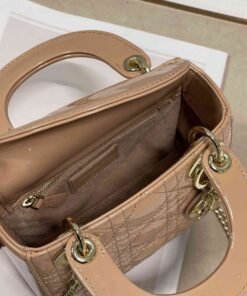 正品级 原厂皮版本 ❤️【Lady Dio.r My ABC】「蔷薇粉漆皮金扣」/三格漆皮单肩带/这款手袋集中体现了Dio.r 对典雅和美丽的深刻洞见。采用牛皮革精心制作,以标志性的藤格纹针脚打造绗缝细节,高雅经典的设计经久不衰。饰以同色调珐琅彩,内配羊猄绒,搭配链条肩带,内部拉链口袋,可手提、肩背或斜挎尺寸:17 x 7.5x 14厘米型号:0505