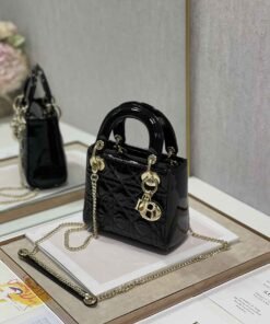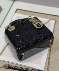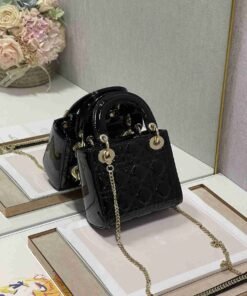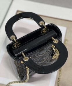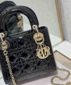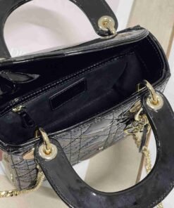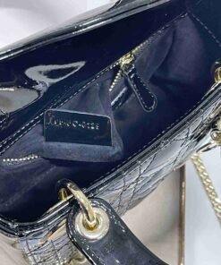 正品级 原厂皮版本 ❤️【Lady Dio.r My ABC】「黑色漆皮金扣」/三格漆皮单肩带/这款手袋集中体现了Dio.r 对典雅和美丽的深刻洞见。采用牛皮革精心制作,以标志性的藤格纹针脚打造绗缝细节,高雅经典的设计经久不衰。饰以同色调珐琅彩,内配羊猄绒,搭配链条肩带,内部拉链口袋,可手提、肩背或斜挎尺寸:17 x 7.5x 14厘米型号:0505