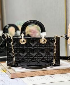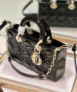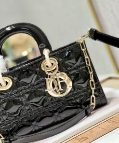 【横版戴妃包】漆皮黑色金扣大号 全新Lady D−Joy包包,很多人应该都被这只窄版戴妃包吸引住了。大爆款的节奏 ,包包自带一长一短两根肩带,多种背法 ♀️,可斜挎可腋下,上身又美又飒,经典的菱格设计 ,搭配光面的小牛皮,优雅又时尚 size:26×6×14cm型号:0540