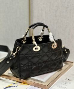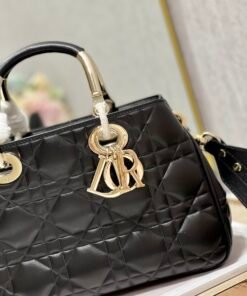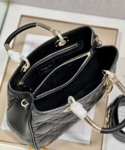 LADY DIOR 95.22「走秀款」❣️❣️❣️LADY 95.22 手袋(大号黑色金扣)重新诠释 LADY DIOR 手袋的轮廓,与经典 LADY DIOR 手袋诞生的年份(一九九五年)以及该手袋得以重新诠释的年份(二零二二年)呼应,时髦精致的弧形轮廓彰显时尚个性,打造醒目高雅的造型。双手柄设计,采用皮革和金属制作,精致高雅,点缀以 DIOR 吊饰,与迪奥先生的幸运符号呼应。型号:1202尺寸:31×31×11cm