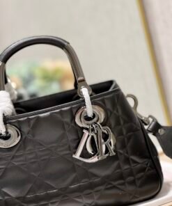 LADY DIOR 95.22「走秀款」❣️❣️❣️LADY 95.22 手袋(中号黑色枪扣)重新诠释 LADY DIOR 手袋的轮廓,与经典 LADY DIOR 手袋诞生的年份(一九九五年)以及该手袋得以重新诠释的年份(二零二二年)呼应,时髦精致的弧形轮廓彰显时尚个性,打造醒目高雅的造型。双手柄设计,采用皮革和金属制作,精致高雅,点缀以 DIOR 吊饰,与迪奥先生的幸运符号呼应。型号:1202尺寸:28×28×9.5cm