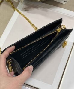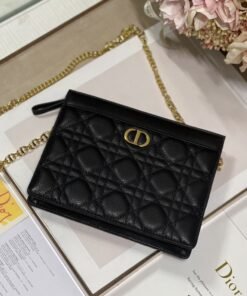 正品级 ❤这款 Dior Caro 拉链手拿包搭配链条,搭配可拆卸的链条肩带,点缀以“CD”链环,可手拿、肩背或斜挎,可与同系列其他单品搭配。正面饰以“CD”标志3 个隔层,其中 1 个带拉链6 个卡槽可拆卸链条肩带尺寸:19×14×3cm 型号:5106