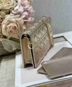 正品级 Dior手拿包三件套❤ 这款 Lady Dior 手拿包采用金色羊皮革精心制作,饰以标志性的藤格纹缉面线和可拆卸的“D.I.O.R.”吊饰,别具一格。搭配可拆卸的链条肩带,及可拆卸的卡夹和拉链小袋,均可单独使用。这款手拿包醒目吸睛,可与同一系列的其他单品巧妙搭配。“D.I.O.R.”吊饰1 个宽大的内部隔层1 个贴袋2 个可拆卸元素:1 个拉链小袋和 1 个带有 8 个卡槽和 1 个贴袋的卡夹可拆卸链条肩带:120 厘米 尺寸:21.5 x 11.5 x 3 厘米型号:77035可收纳一部 iPhone 11 Pro 手机