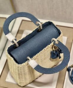 【Lᴀᴅʏ ❤ 五格篮子/蓝色蛇皮】 这款 Wicker 五格菜篮子包采用柳条经过传统手工工艺精心编织而成,是一款经典的时尚单品,彰显精湛工艺。翻盖内里配绒布,带有拉链口袋,灵感源自品牌标志款式 Book Tote 手袋,配有同色皮蛇纹logo,外搭配蓝色蛇皮纹 调节肩带,可肩背或斜挎。很适合旅游外出的随心休闲穿搭。戴妃lady五格竹篮子√尺寸:24×20×11cm 型号:9989