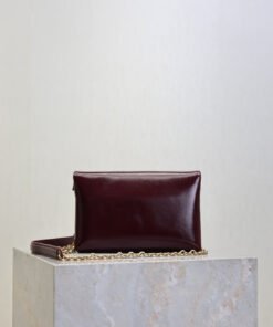 Calypso new mini chain bag · Red oil wax leather gold buttons.