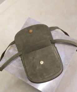 Kaia small military green matte, round and compactAppearance is simple and neatchic, with a minimalist style and golden logo badge that stands out prominently! The saddle bag shape has a unique retro vibe and personal touch, definitely not easy toColor Contrast!