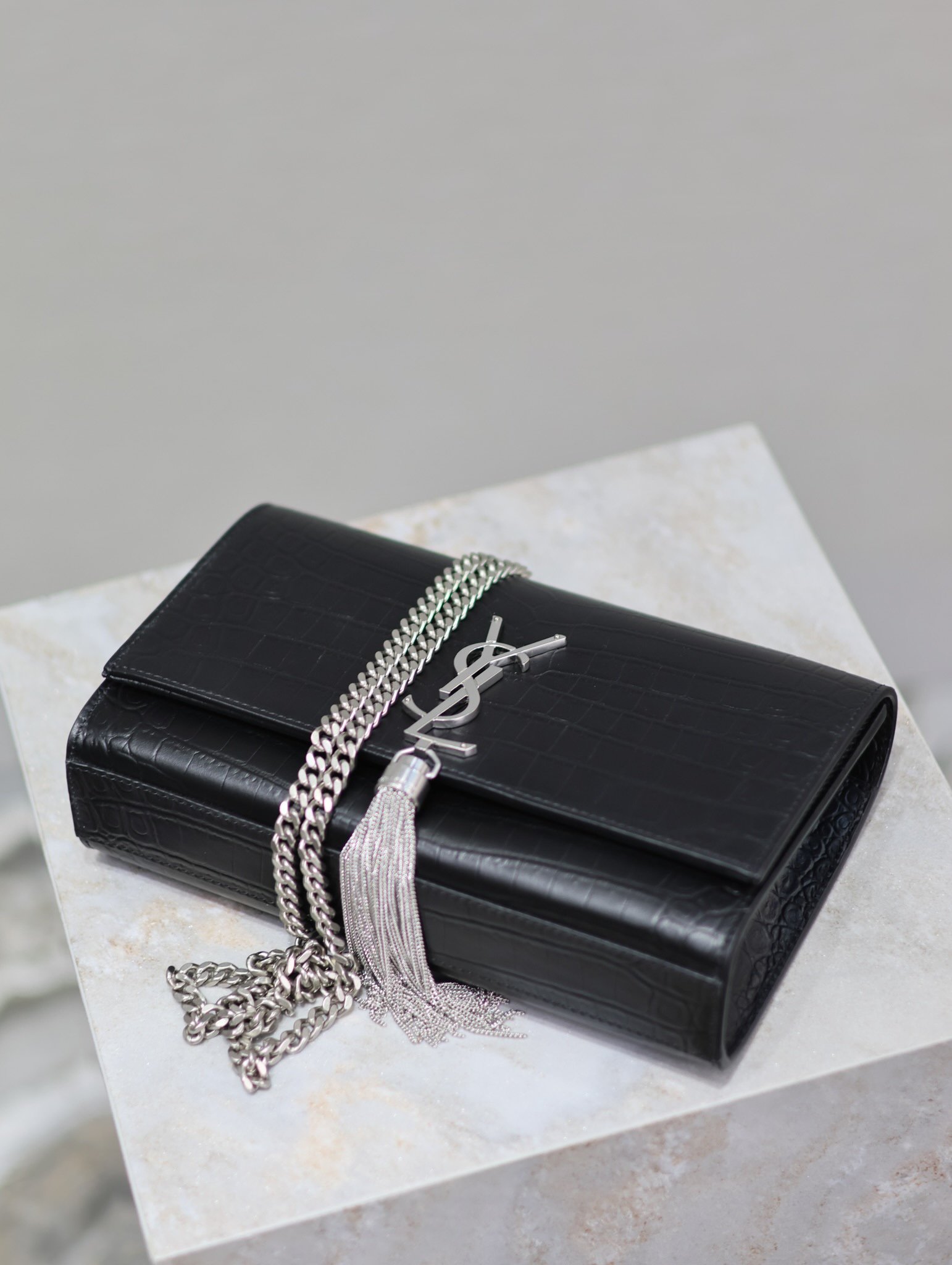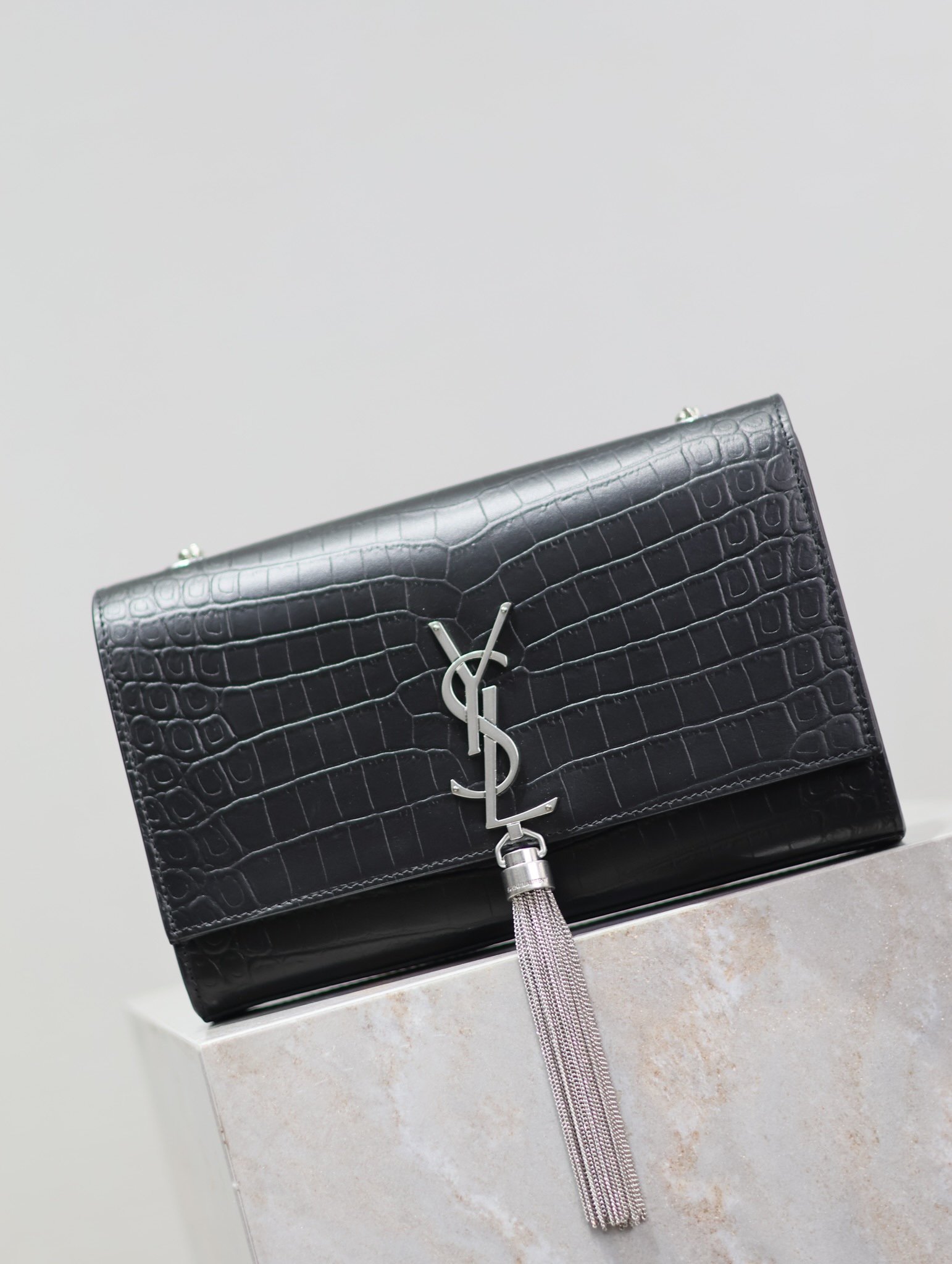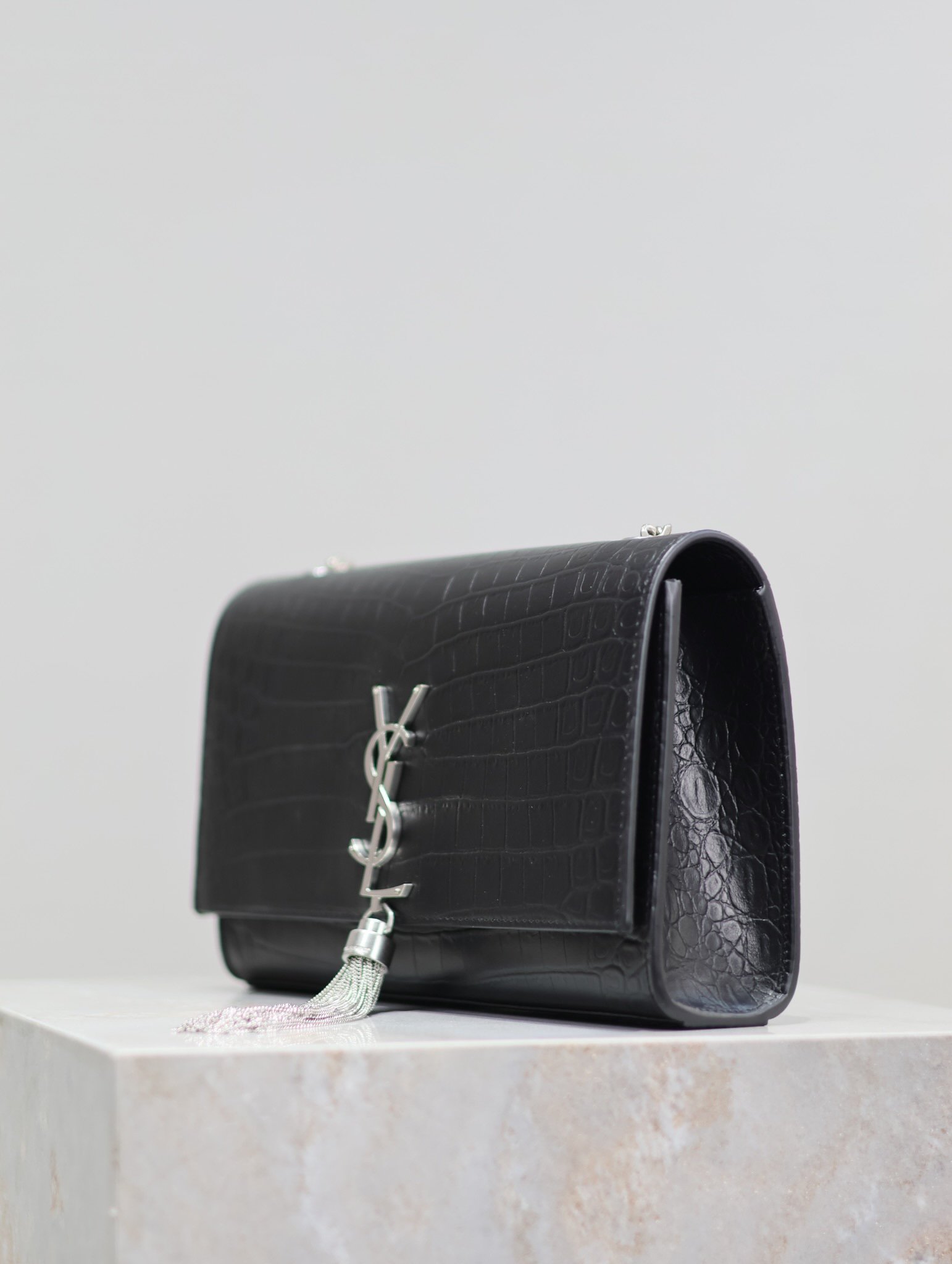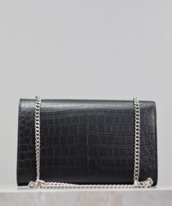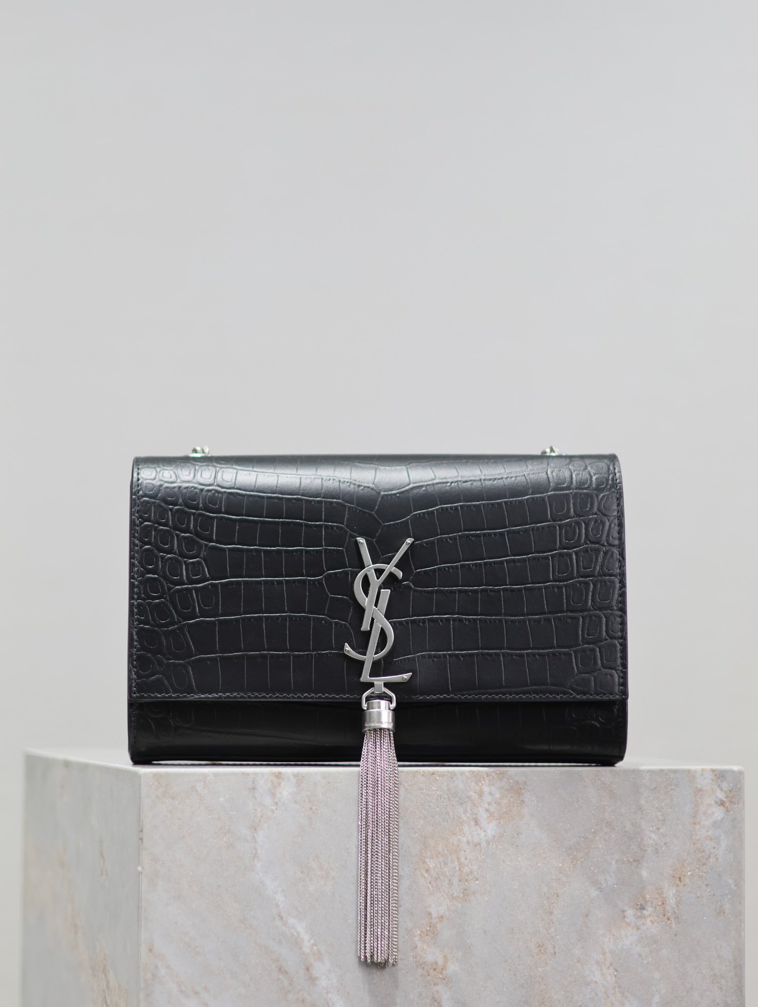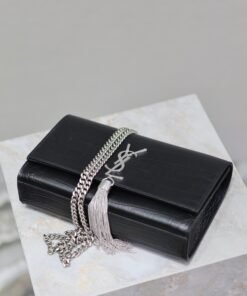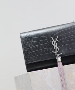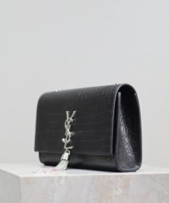 Eternal Classic Black Silver Rivet Matte Crocodile Texture KATE 24cm Tassel Bag
