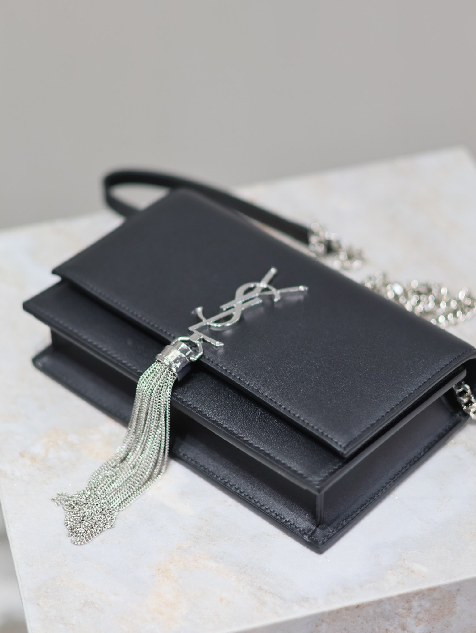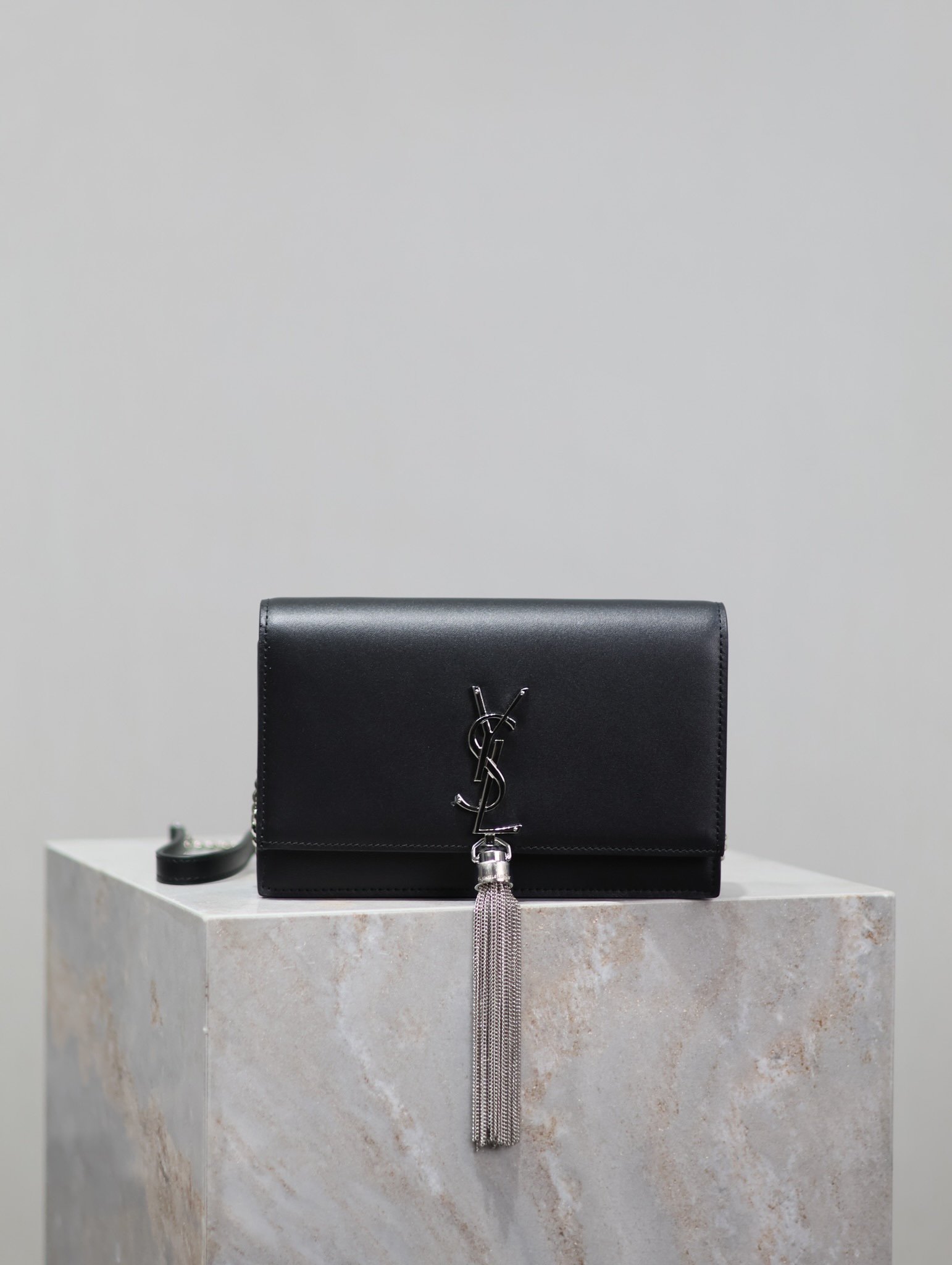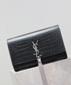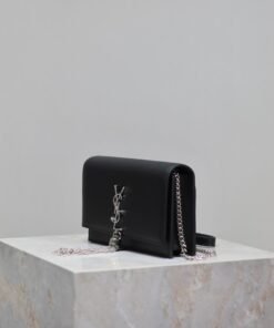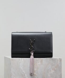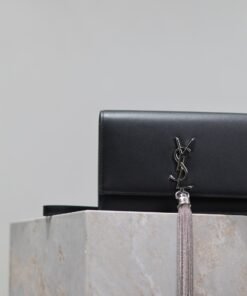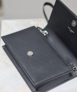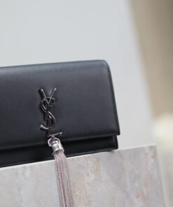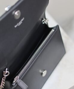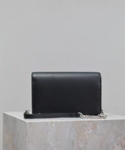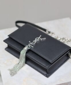 Eternal Classic Black Silver Clasp Flatweave Kate_Fringe Chain Shoulder Bag, removable shoulder strap for use as a clutch, 6 card slots, 1 zipper coin pocket, 1 bill compartment…Shoulder strap length is 60 cm, classic Italian imported South African leather,Modest yet sophisticated, can be paired with casual outfits and also suitable for formal occasions! Model: 452159