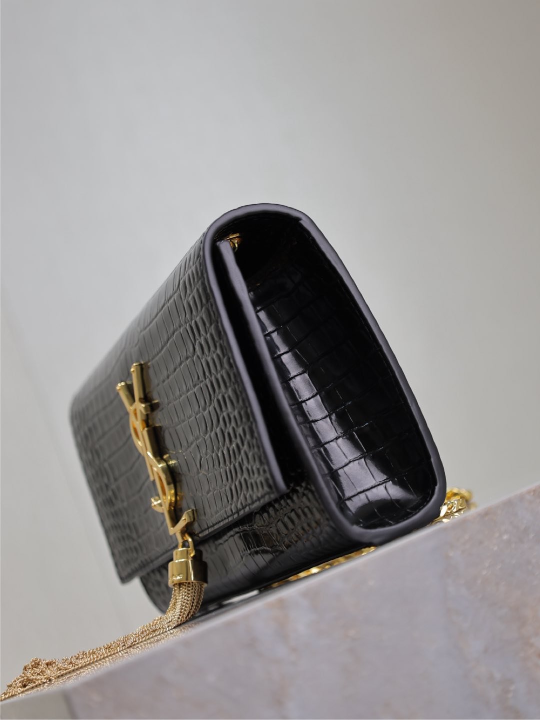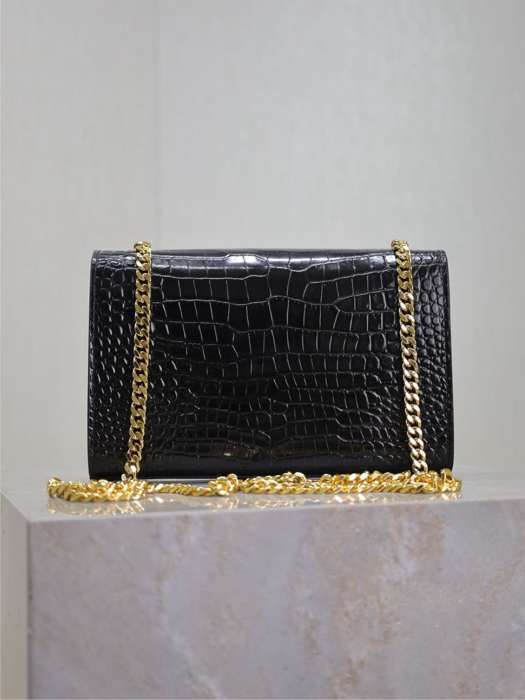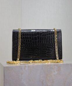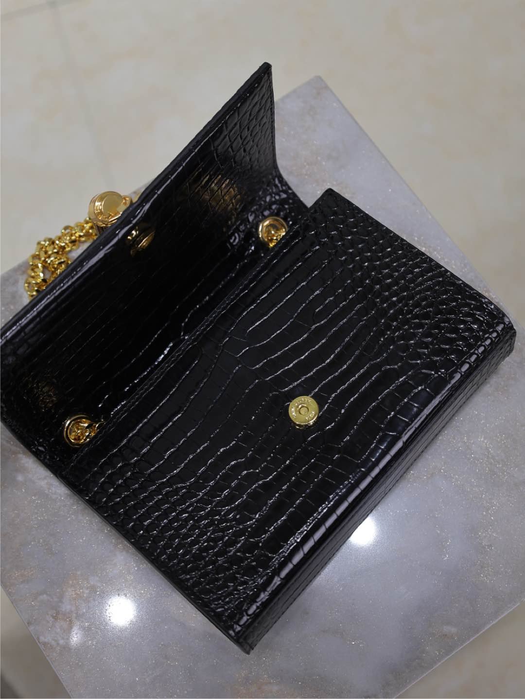 Black Crocodile Pattern Gold Button Strap – 20cm