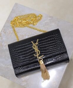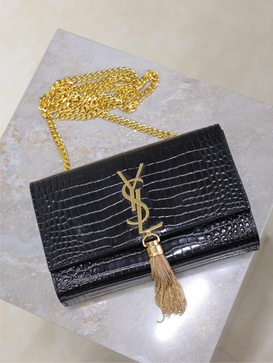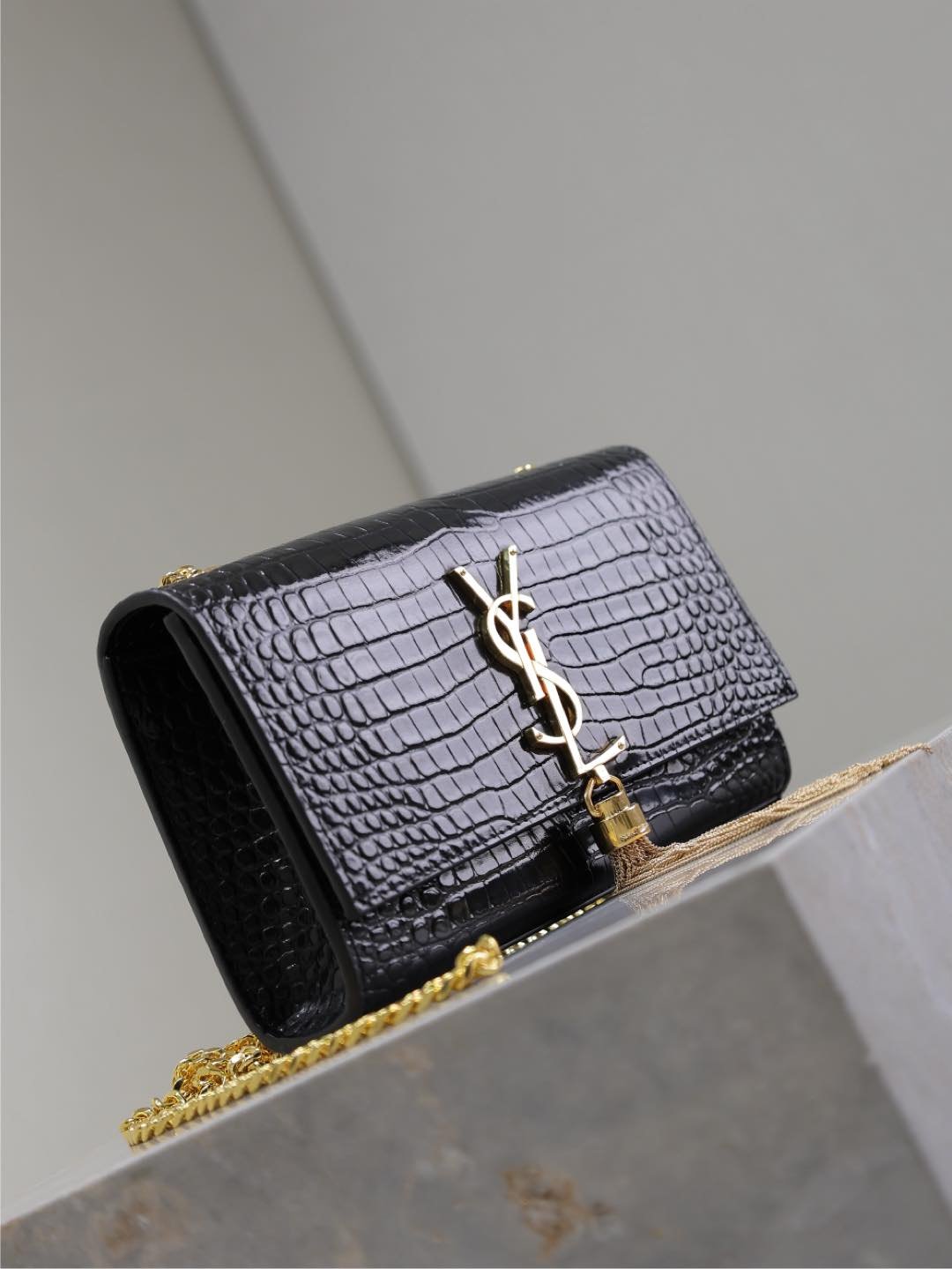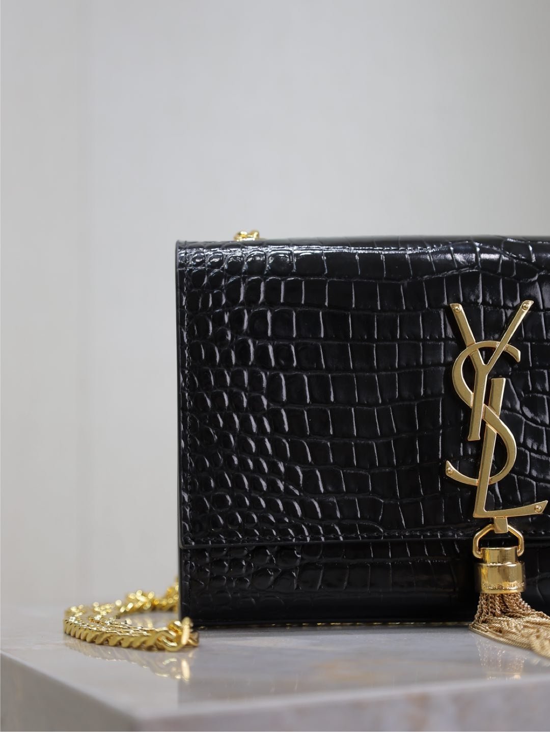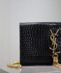 Black Crocodile Pattern Gold Button Strap – 20cm