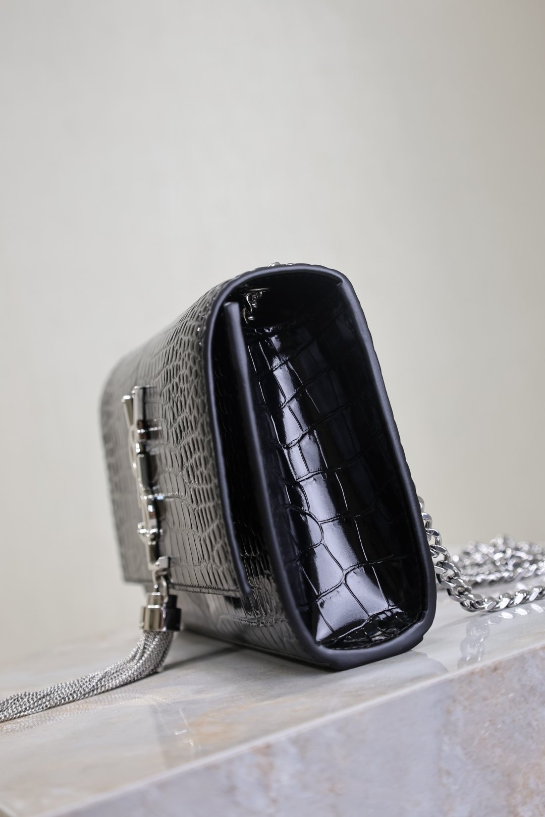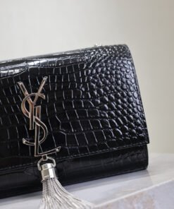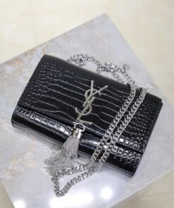 Black Crocodile Pattern Silver Buckle Strap with Tassels – 20cm