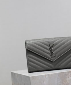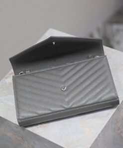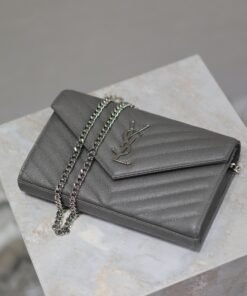 Gray silver button caviar monogram envelope bag. A super practical mini pouch, the most classic style, upgraded to the highest version, made of 100% Italian lambskin with meticulous craftsmanship; custom metal Y logo stands outShowcase individuality; a snap-flap design ensures safety in use; the small pouch has ample capacity, featuring two coin pockets, two central compartments, one zipper inner pocket, and multiple card slots, capable of holding everything!