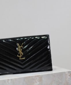 Black monogram embossed leather envelope bag. A super practical mini pouch, the most classic style, upgraded to the highest version, 100% Italian lambskin with meticulous craftsmanship; customized metal Y-logoShowcase individuality;Flip-style design ensures safety in use.;Small Purse, Large Capacity,Two Paper Bills Separated,Two central layers,One zipper inner pocket and multiple card slots,Load everything!