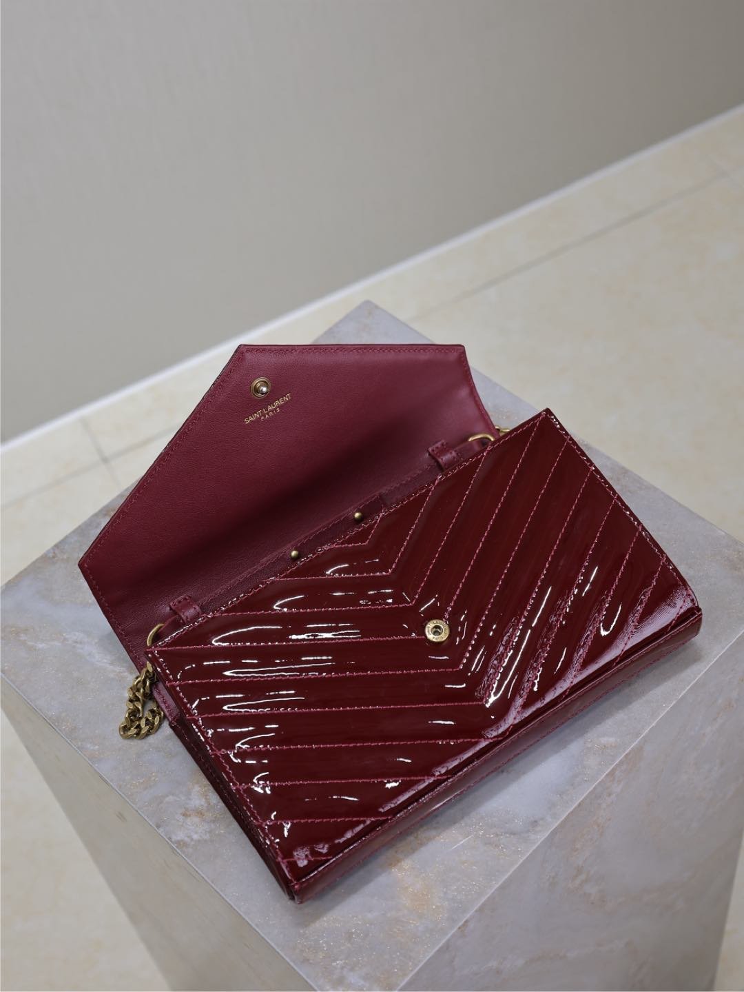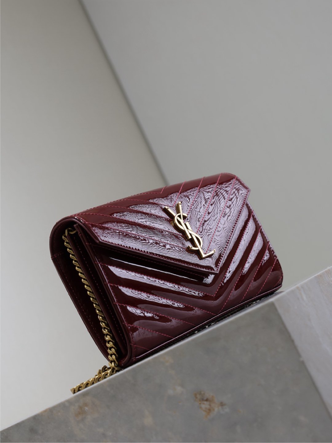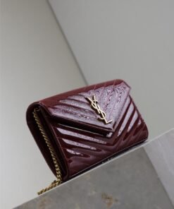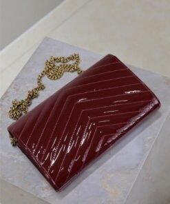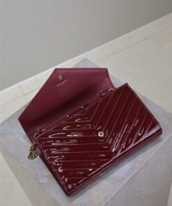Red lacquer monogram envelope bag. A super practical mini pouch, the most classic style, upgraded to the highest version, 100% Italian leather with meticulous craftsmanship; customized metal Y logo stands out; a flip-top design ensures safety; small in size but large in capacity, featuring two coin pockets, two central compartments, one zipper inner pocket, and multiple card slots, capable of holding everything!