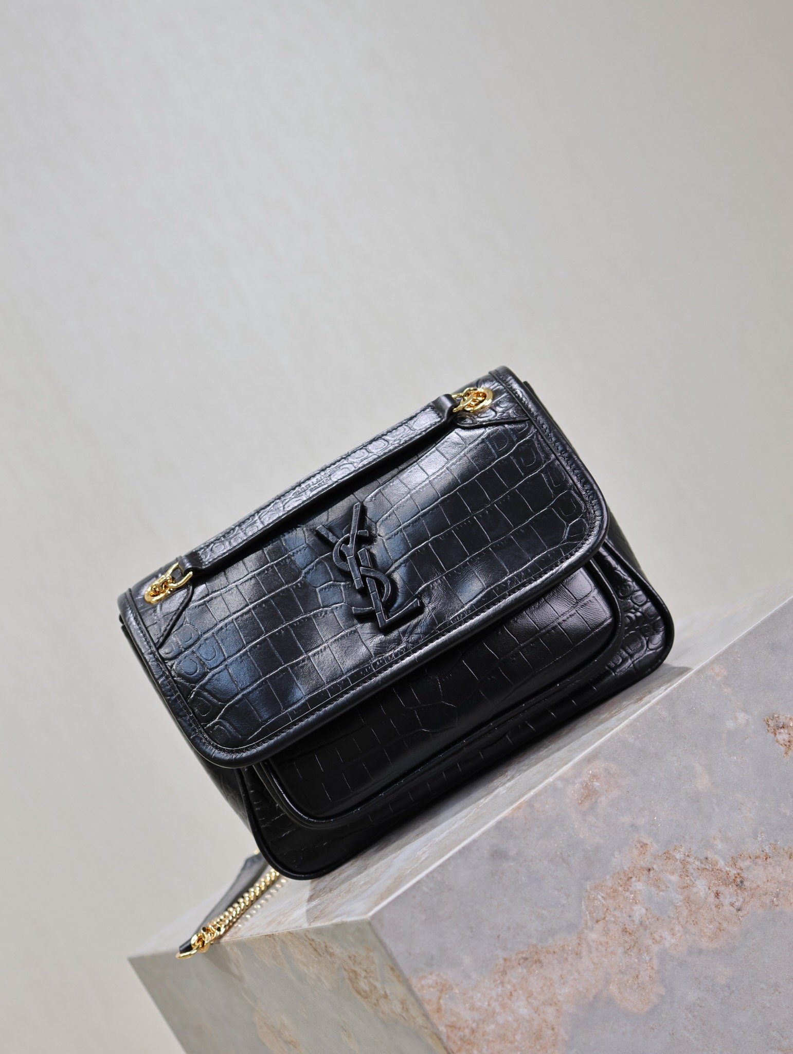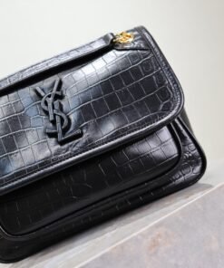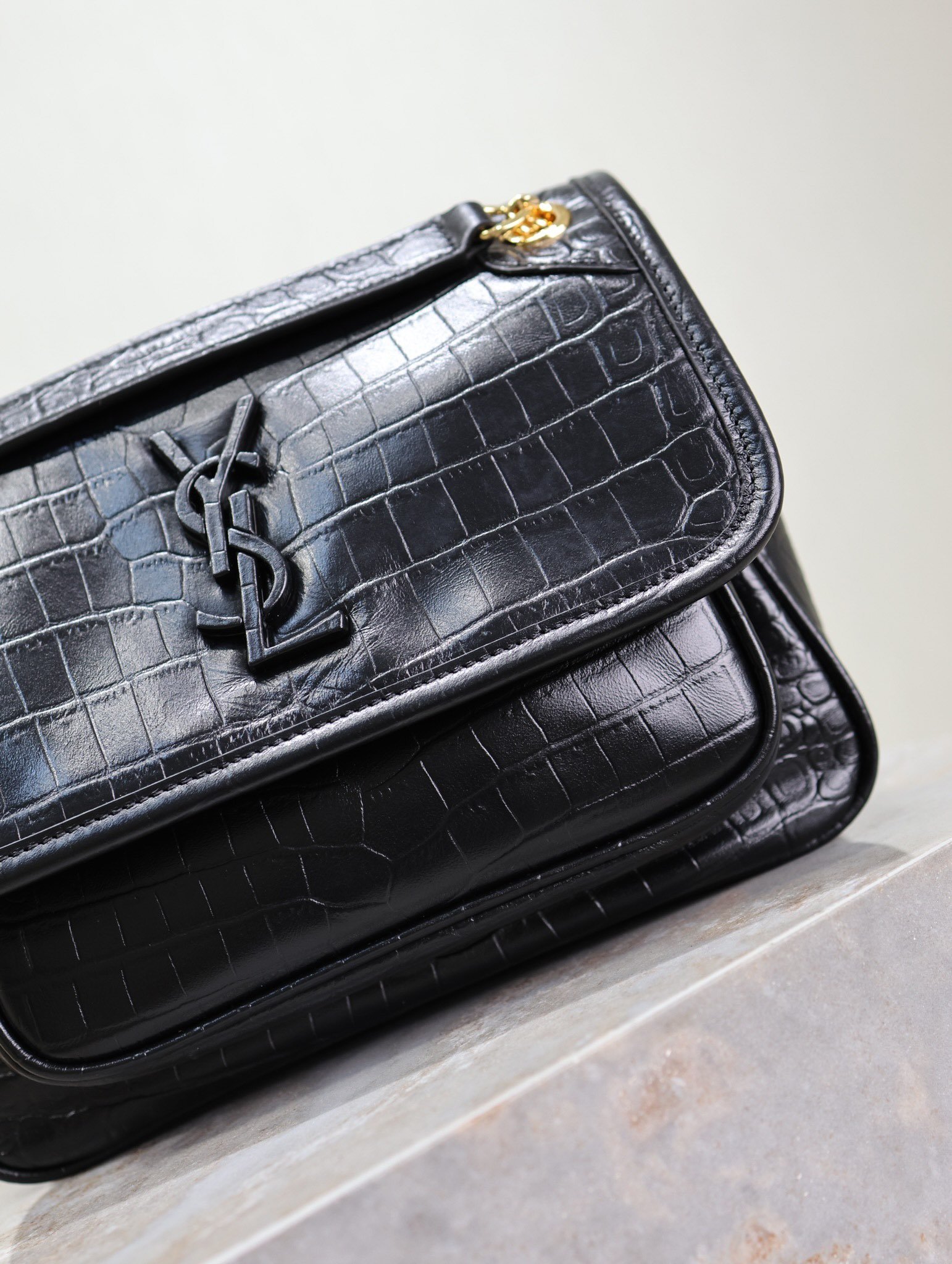 Black Crocodile Print Golden Chain, Niki_22cm