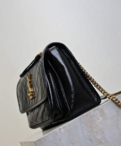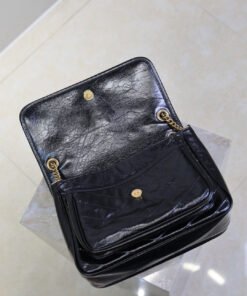 Black wax oil leather · Niki’s designInspired byYClassic Smoking Attire, Overall style is cool and carefree。Wrapped body using oil-impregnated leather,Naturally wrinkle-resistant and has a retro feel,Durable and long-lasting!Iconic Metallogo,Antique-style aged texture,Modest and Sophisticated,As if silently articulating the fashion attitude of the brand!
