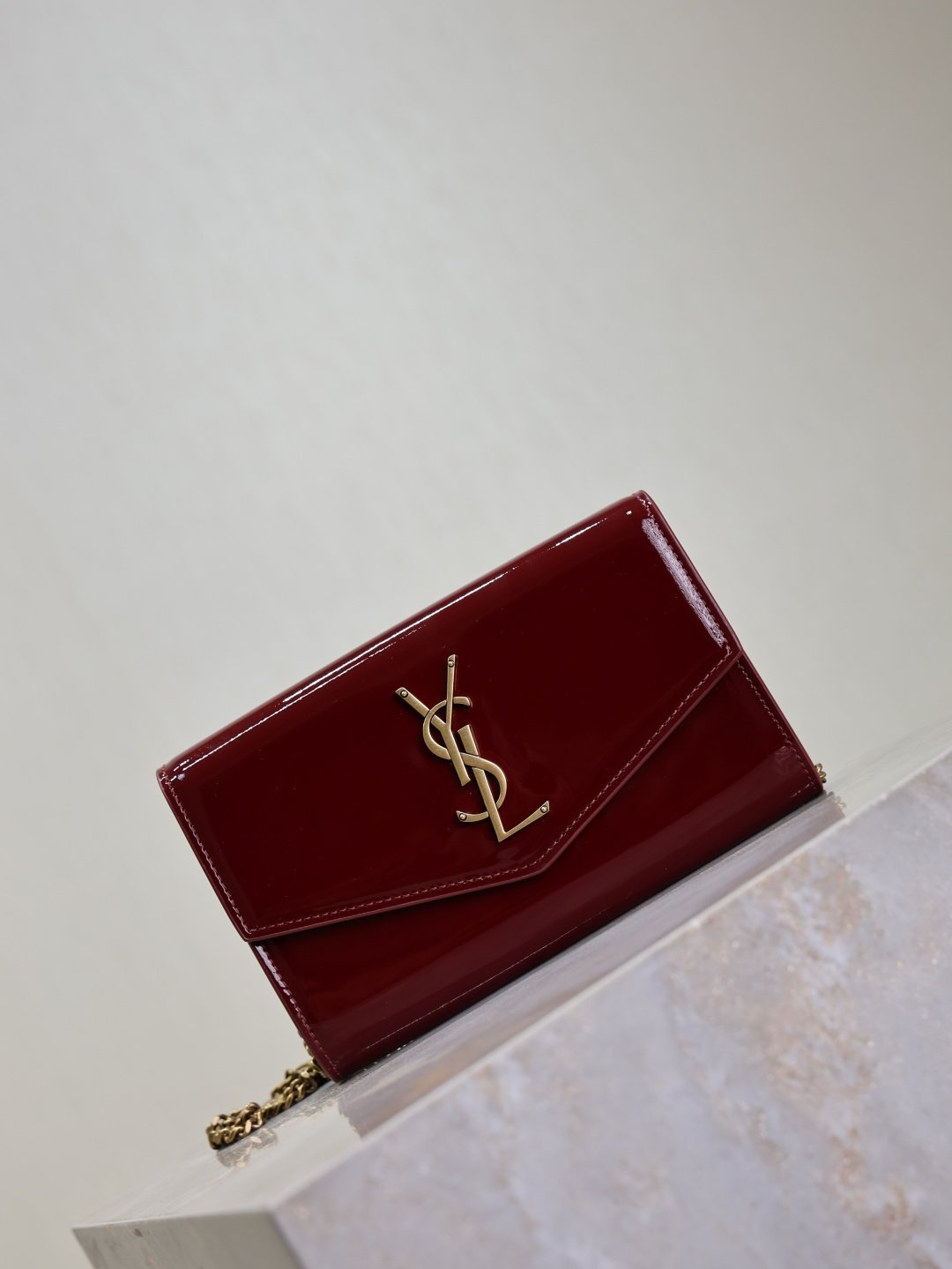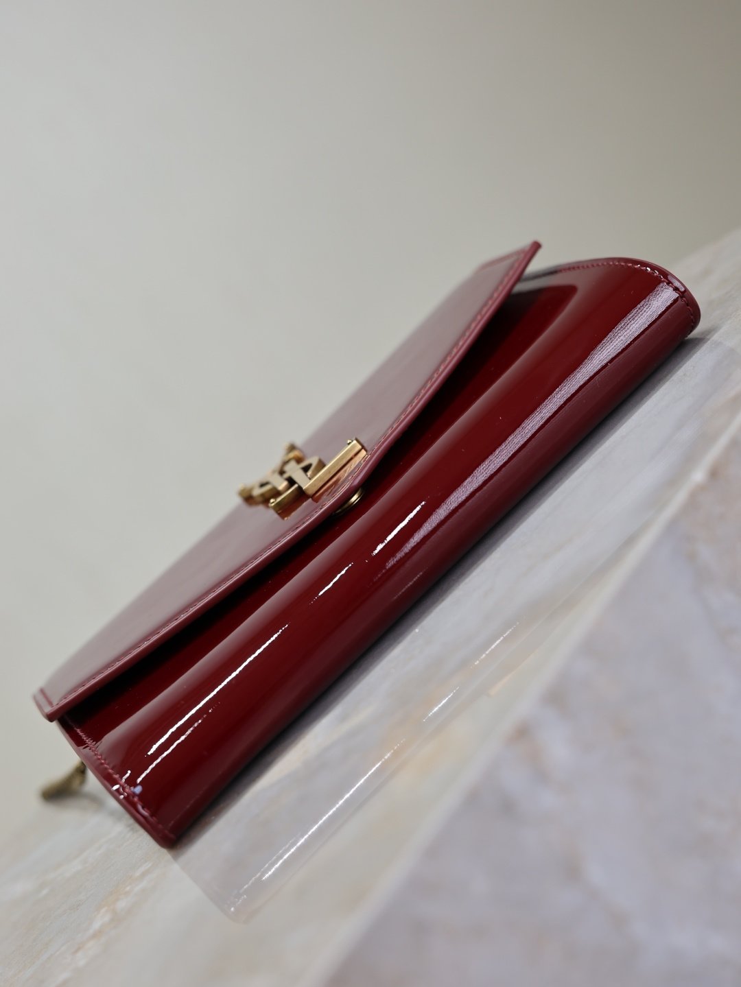 Red lacquer with gold buttons · Mini envelope clutch, the most iconic metal logo, comes with a detachable chain shoulder strap, can be used as a hand strap directly! It also comes with a small card holder that can hold up to 45 cards without any problems! Made of Italian imported leather, the shoulder strap is 48cm long! Although compact, it can fit three Plus phones, achieving a practical rate of 100%!